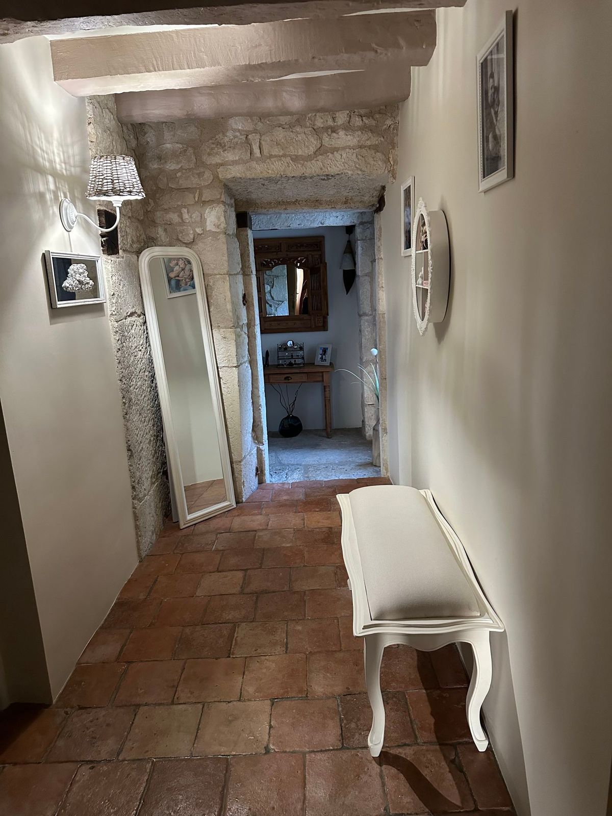 La chambre Quercynoise reflète l’authenticité du Quercy avec ses pierres typiques, ses poutres apparentes et ses tons vert .Une atmosphère régionale chaleureuse pour un séjour plein de caractère