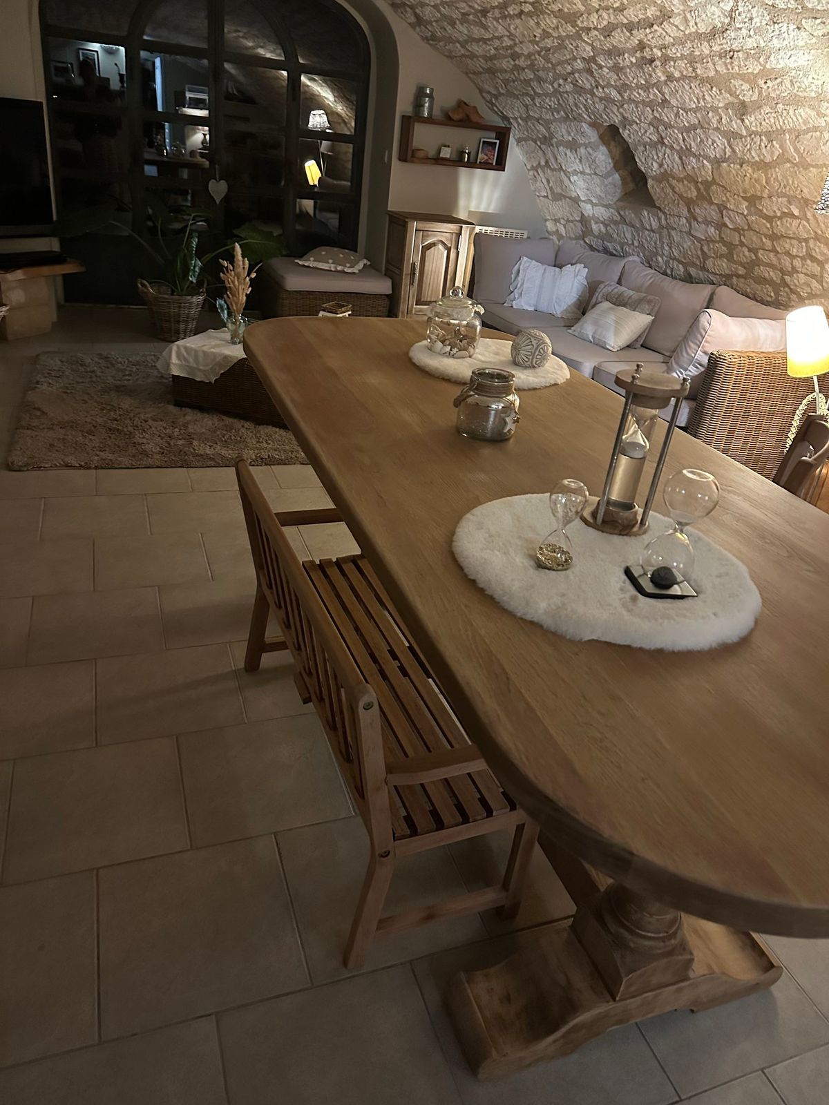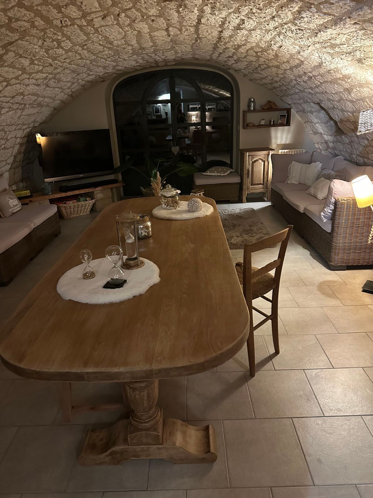 • Un coin repas et des espaces partagés aménagés dans l’ancien chai